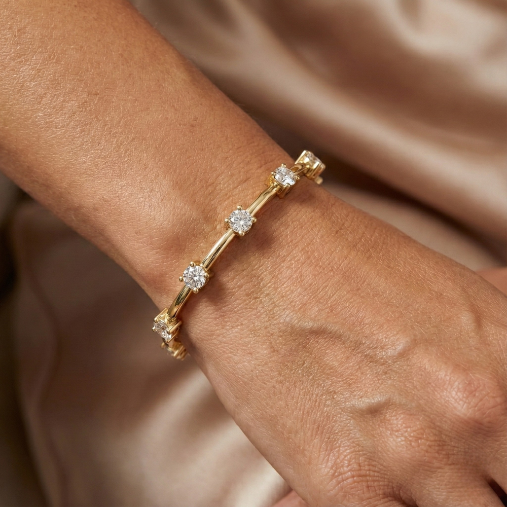 Shop Alma by Jewel Nests confidently—this standout diamond bracelet elevates lab diamond collections in 14k gold diamond bracelet, 18k gold diamond bracelet, yellow gold diamond bracelet, white gold diamond bracelet, or rose gold diamond bracelet finishes tailored for North American sophistication. Discerning shoppers frequently Buy fine jewelry bracelets or purchase diamond bracelets online, choosing the secure hinged construction, 2.50ct station drama, and endless stacking versatility of premium Lab Diamond Bracelets.