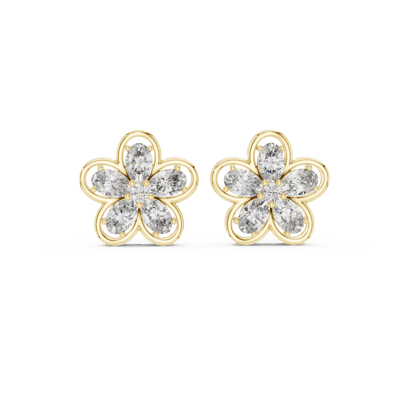Bahira by Jewel Nests features three oval cut lab-grown diamonds paired with round diamonds totaling approximately 1.50 carats, all with bright E/F color and VS-VVS clarity, securely set in prong settings for elongated sparkle in premium fine jewelry diamond earrings and Oval Diamond Earrings. These Oval & Round Diamond Earrings, Oval Cut Earrings, and Oval Diamond Earrings are available in 14K and 18K solid Yellow Gold, White Gold, or Rose Gold, offering graceful movement perfect for bridal looks or refined elegance.