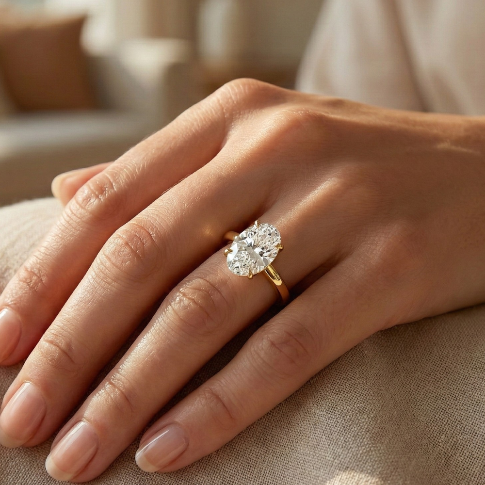 Oval Bezel Set Lab-Grown Diamond Engagement Ring | Lotus Veil