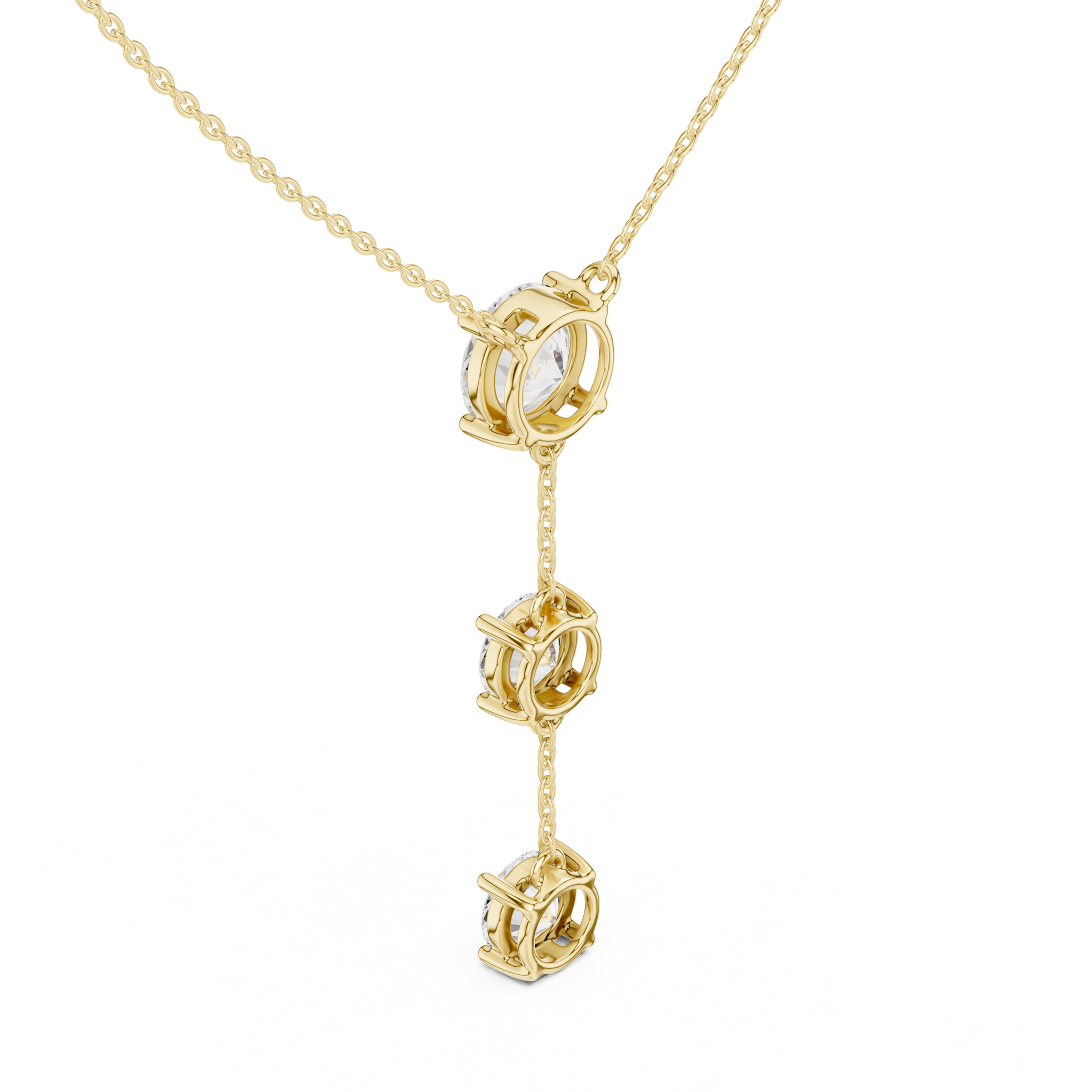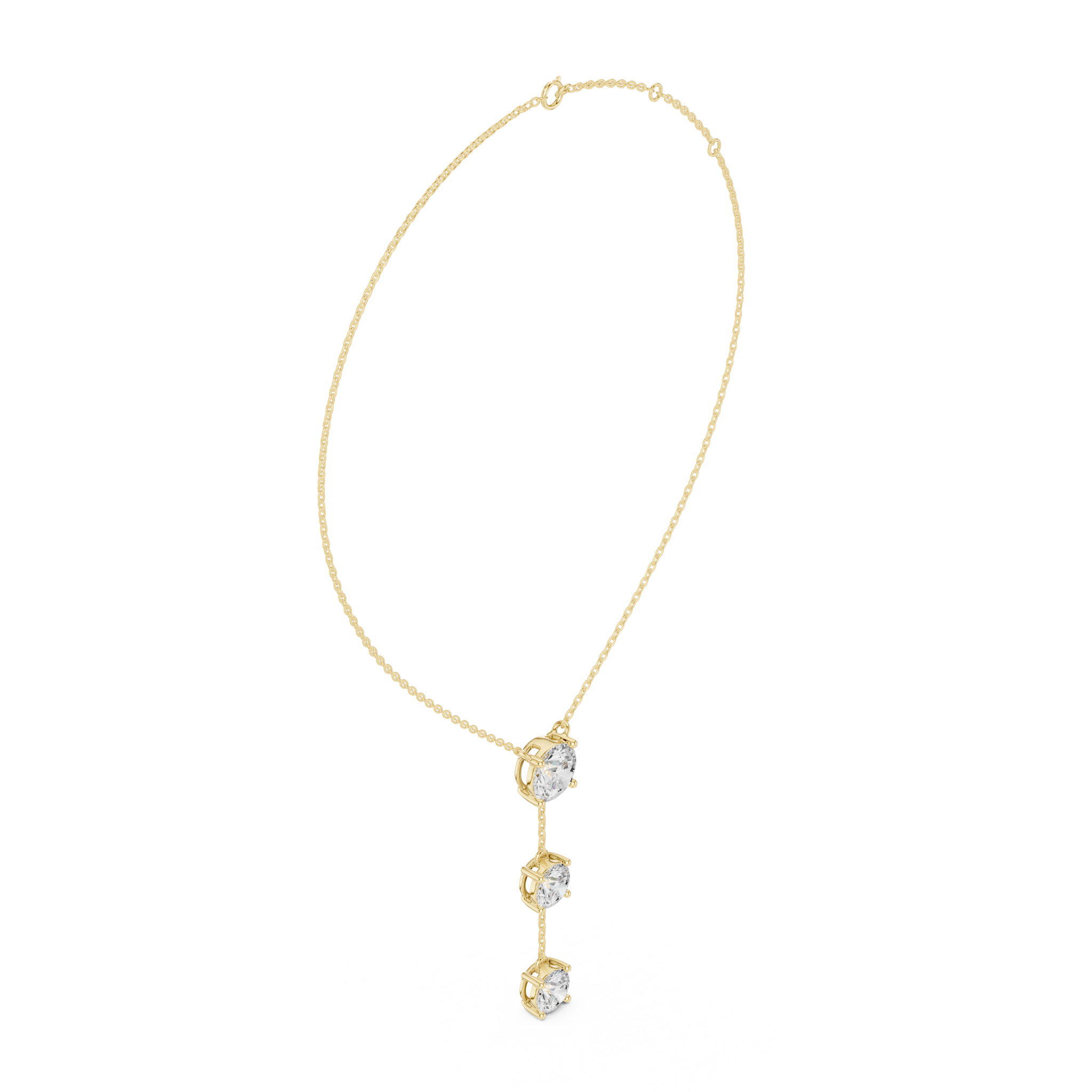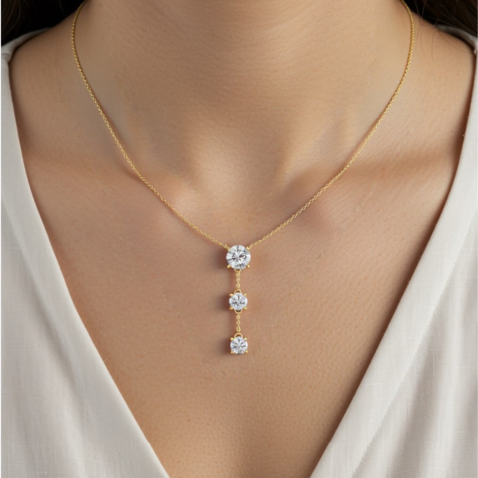 Elevate your style with Brillia, a solitaire drop lab-grown diamond necklace by Jewel Nests. Featuring a round brilliant cut center diamond, accented by two perfectly matched side stones, this necklace radiates elegance and timeless beauty.