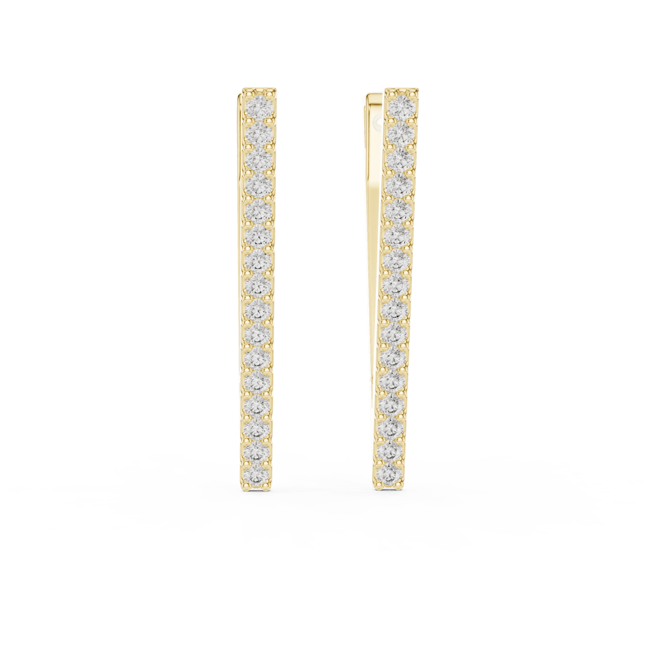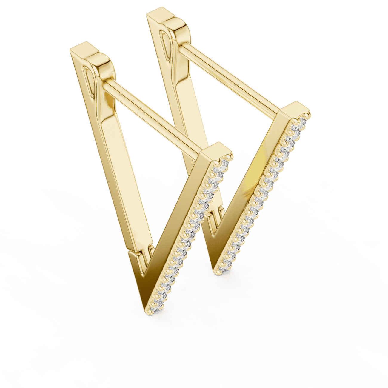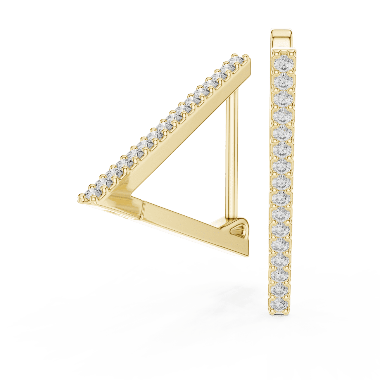 Dorothea by Jewel Nests features round cut lab-grown diamonds totaling approximately 0.15 carats, carefully selected in bright E/F color and VS–VVS clarity for crisp, refined sparkle along each geometric triangle hoop earring. Set in a sleek fine jewelry design, these round cut lab diamond hoop earrings add a subtle statement that feels minimalist yet luxurious for everyday wear or special occasions.