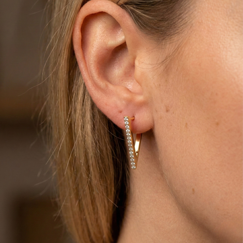 Available in 14K and 18K solid Yellow Gold, White Gold, and Rose Gold, Dorothea is perfect for customers who want to buy fine jewelry online with confidence and transparent fine jewelry online price. Ideal for North American shoppers looking to purchase fine jewelry diamond hoop earrings, this triangle hoop style offers a fresh take on fine jewelry diamond hoop earrings and fine jewelry hoop earring online options at Jewel Nests.