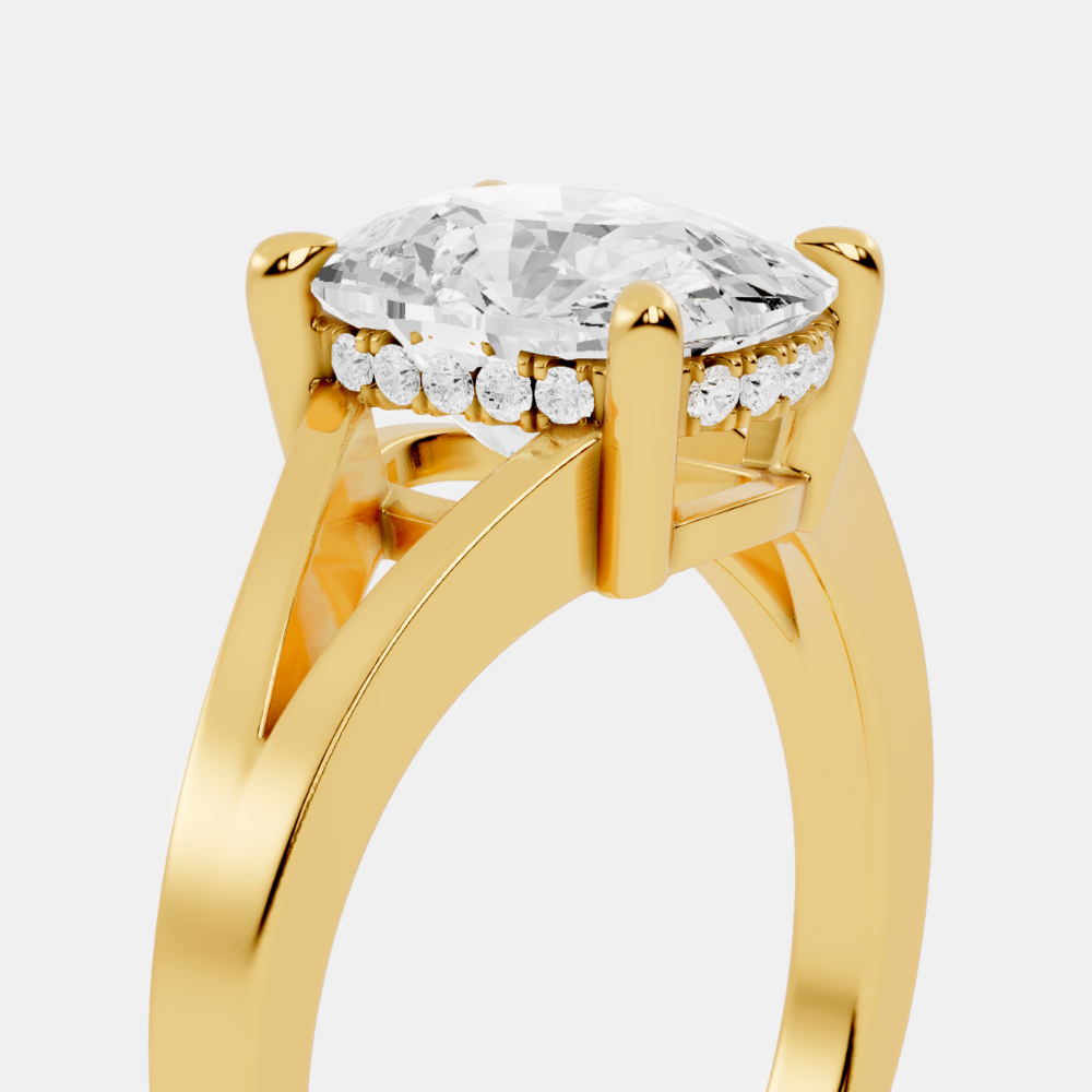 Expertly crafted in Canada, this Hidden Halo Engagement ring is available in 14K or 18K Solid Yellow Gold, White Gold, Rose Gold, and Platinum. Each Elongated Cushion lab diamond ring in the collection highlights unparalleled attention to detail and ethical artistry. The Elongated Cushion secret halo lab diamond ring design radiates elegance from every angle, ideal for brides who appreciate contemporary refinement with sustainable roots.