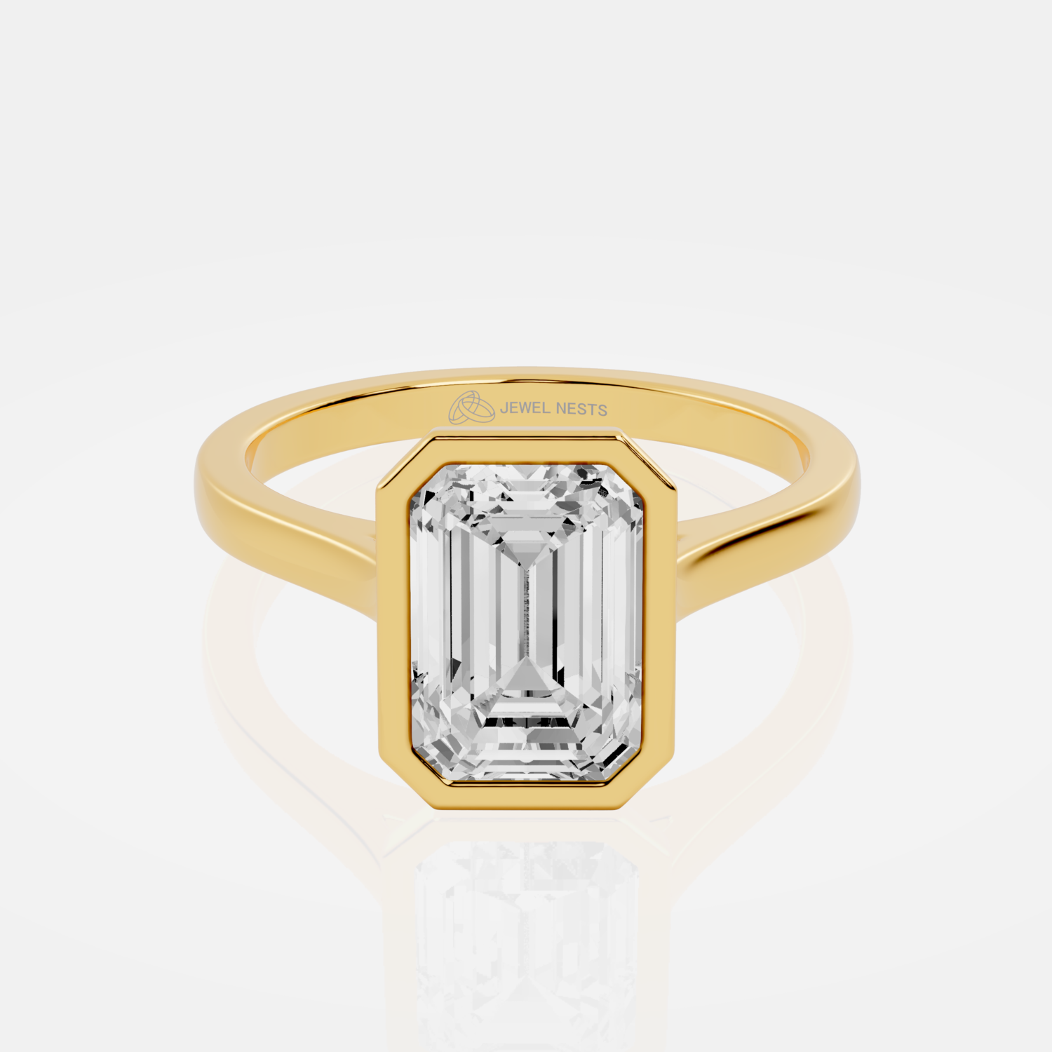 Emerald Cut Bezel Set Lab Diamond Engagement Ring | The Arctic Glow by Jewel Nests reflects minimalist elegance and modern brilliance — created for couples across Canada and the United States who appreciate timeless design and ethical craftsmanship. This sophisticated Bezel Emerald diamond ring showcases a certified Emerald cut lab grown diamond, secured in a sleek bezel setting that provides both protection and maximum light reflection. The clean lines of the radiant 2.0 mm band add contemporary charm and a bold yet understated aesthetic, making this ring a perfect balance of simplicity and sophistication.