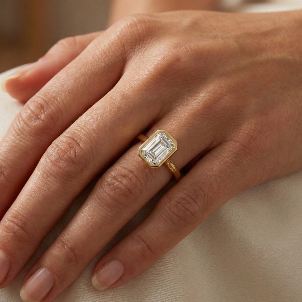 Emerald Cut Bezel Set Lab Diamond Ring | The Arctic Glow