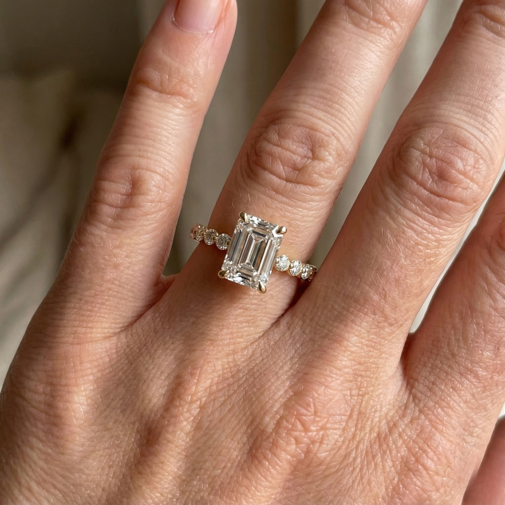 Emerald Cut Hidden Halo Lab Diamond Bubble Pave Engagement Ring | Leipzig Echoes