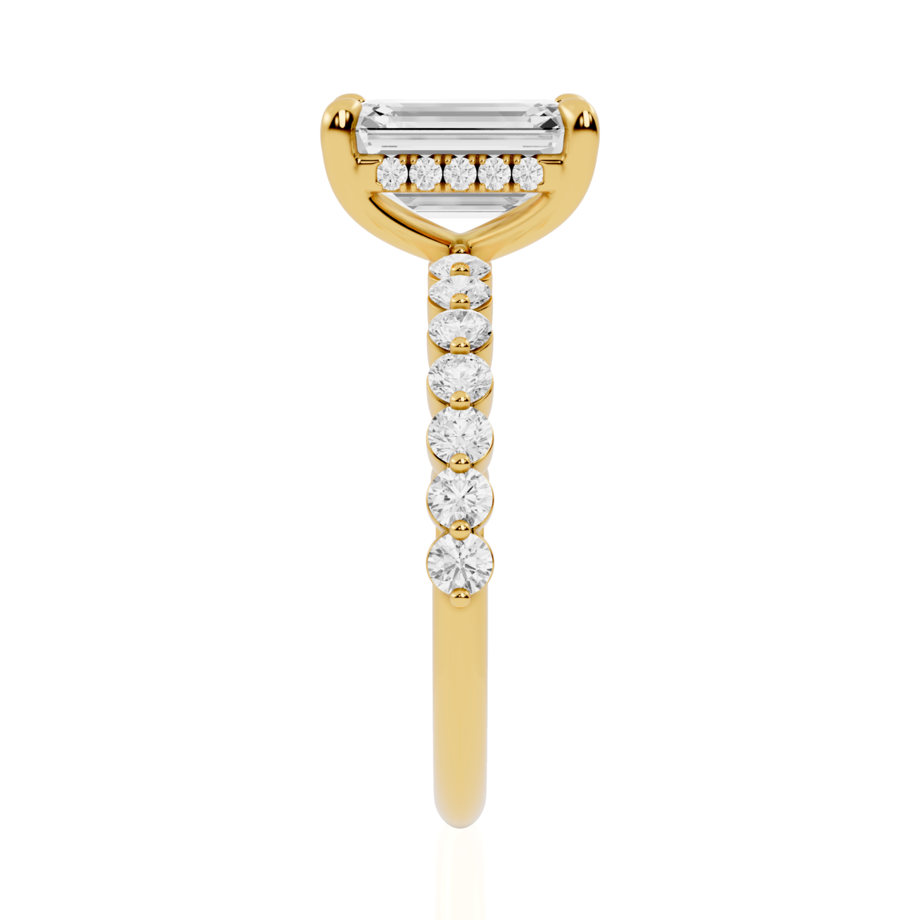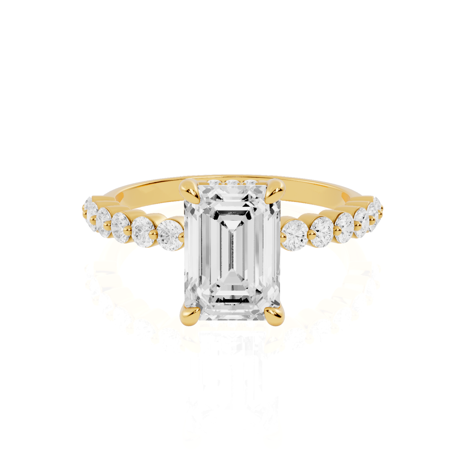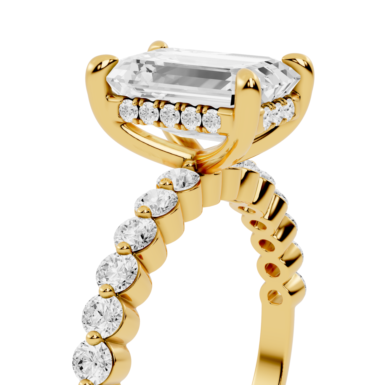 Meticulously crafted in Canada, this Hidden Halo Engagement ring comes in 14K or 18K Solid Yellow Gold, White Gold, Rose Gold, and Platinum, offering full customization for every style preference. The Emerald lab diamond ring reflects sophistication with its geometric symmetry and clean lines. The Hidden halo Emerald Cut Diamond Ring and Emerald hidden halo pavé band engagement ring deliver striking depth and brilliance, complemented by the unique bubble pavé design that balances elegance with modern artistry. Perfectly proportioned and flawlessly detailed, this Pavé Band Engagement Ring combines comfort, beauty, and lasting brilliance.