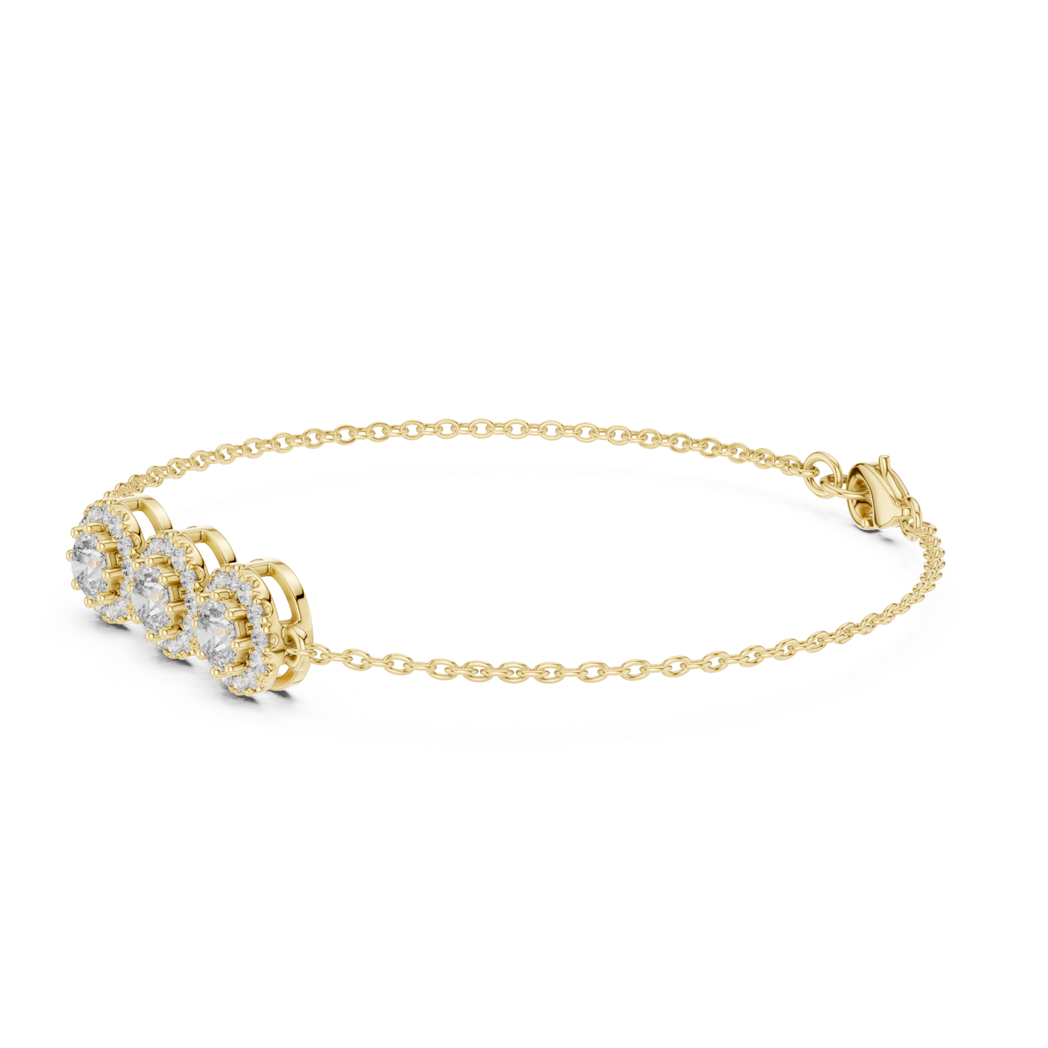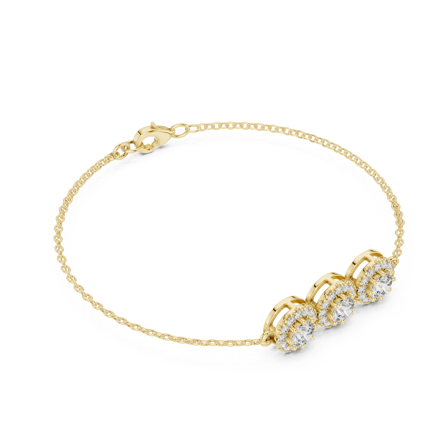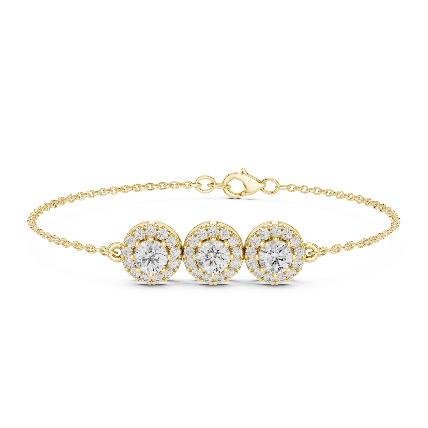 Halo Three Stone Round Lab Diamond Bracelet | Brisa