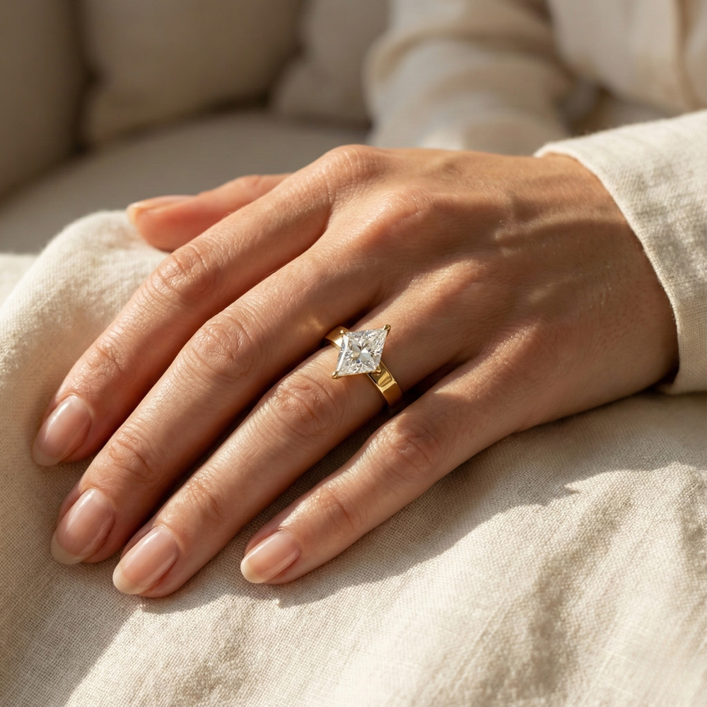 Lozenge Cut Lab Diamond Solitaire Engagement Ring | Harbour Serenity