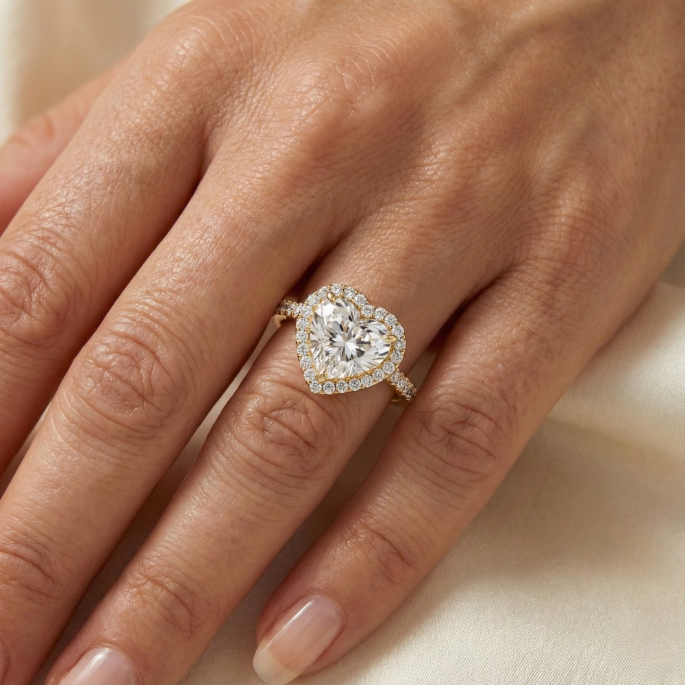 Heart Shape Halo Lab Diamond Engagement Ring | Lush Oasis