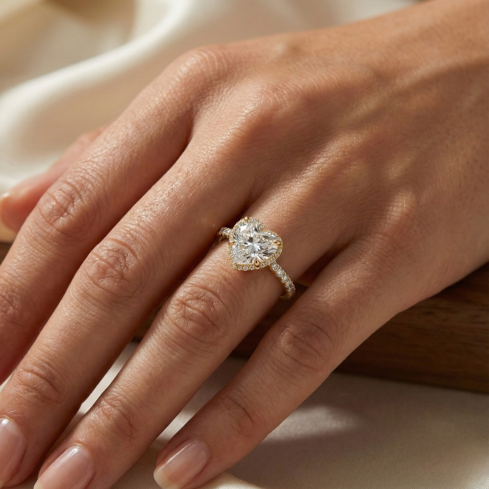 Heart Shaped Hidden Halo Lab Diamond Engagement Ring | Dijon Ecstasy