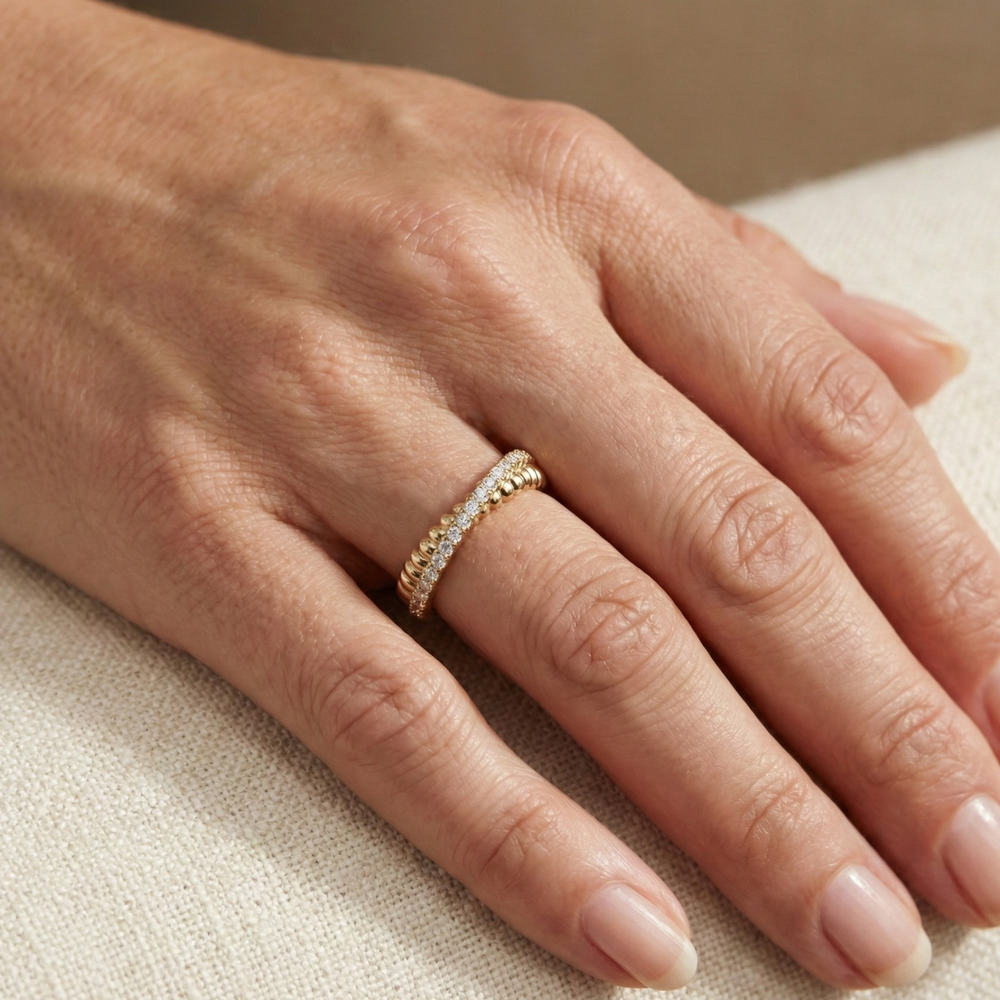 Perfect for modern brides in Canada and the USA, Liora is ideal for those seeking eco-conscious diamond wedding rings for women. Whether worn as a wedding band or stackable ring, it radiates natural charm and refined grace — a symbol of love rooted in purity and sustainability.