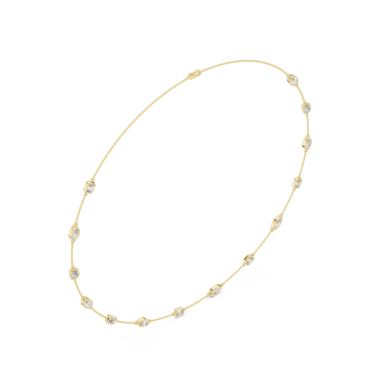 Introducing Marie by Jewel Nests, where timeless design meets minimalist luxury. This bezel set diamond necklace features a stunning duo of lab grown marquise cut and emerald cut diamonds, beautifully crafted in your choice of 14K or 18K solid yellow, white, or rose gold. The sleek bezel setting enhances the brilliance of each diamond while offering a clean, contemporary look that’s perfect for layering or wearing solo.