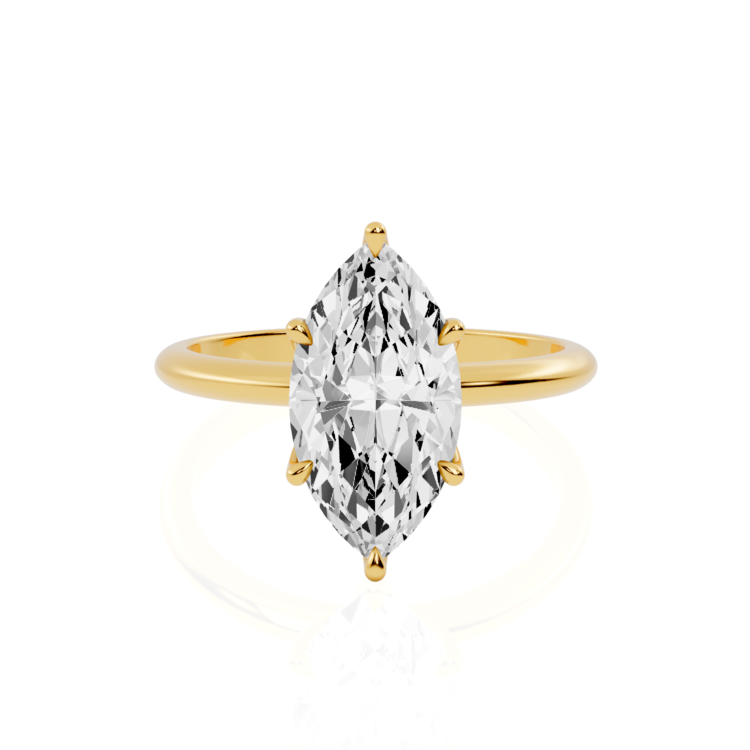 Marquise Cut Lab Diamond Solitaire Engagement Ring | Queensland by Jewel Nests embodies timeless elegance and exceptional craftsmanship for Canadian couples seeking an ethical Solitaire diamond ring. Featuring a certified Marquise cut lab grown diamond in a six split-prong setting, this design balances classic luxury with a modern touch. The polished 2.0 mm tube band enhances durability and comfort, allowing the Marquise lab diamond ring to shine brilliantly from every angle.