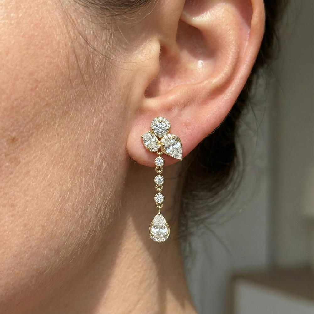 Meilin Pear Oval & Round Lab Grown Diamond Drop Earrings