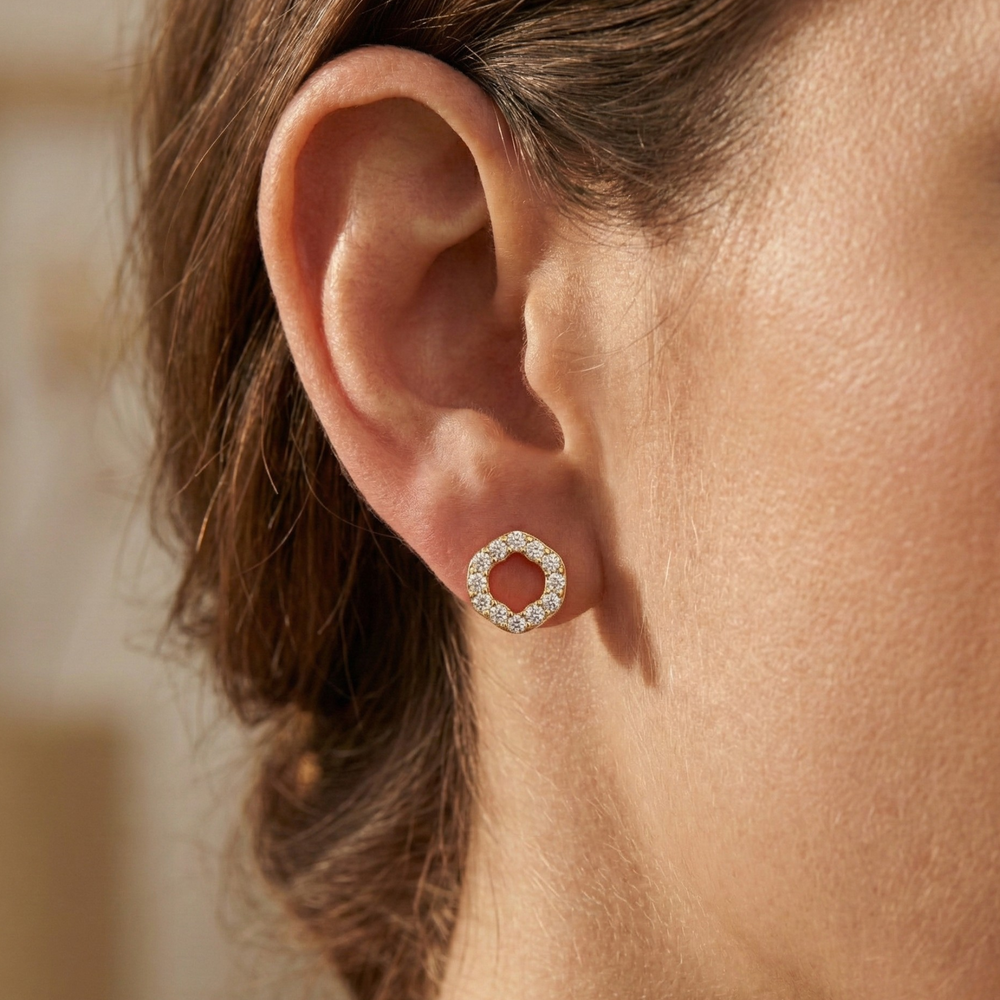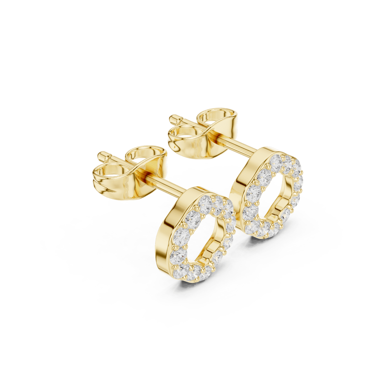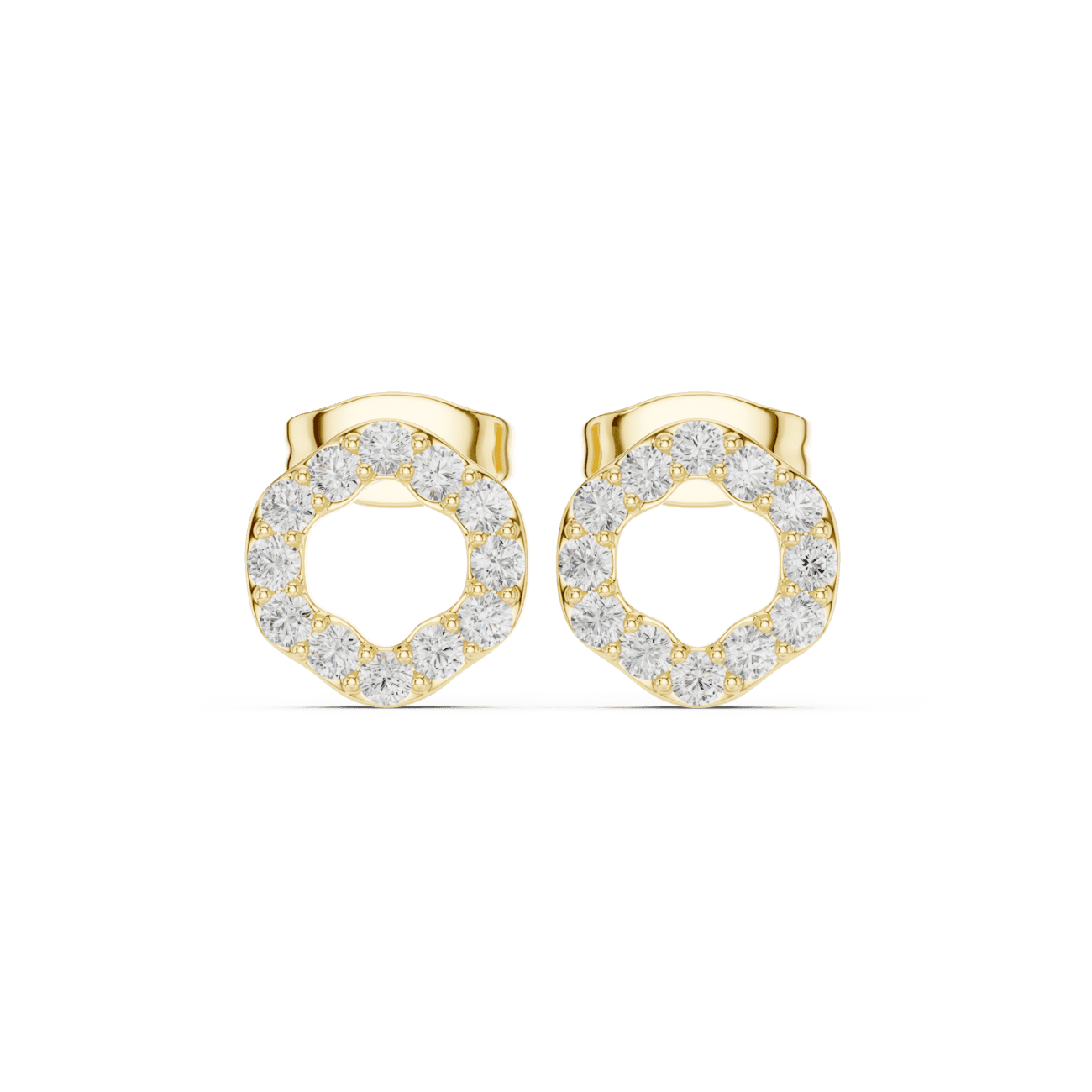 Mesfina by Jewel Nests features round cut lab-grown diamonds totaling approximately 0.40 carats, with bright E/F color and VS-VVS clarity, artfully set in a distinctive circle shape frame for continuous sparkle in premium fine jewelry diamond earrings. These Round Diamond Earrings and Round Cut Earrings are available in 14K and 18K solid Yellow Gold, White Gold, or Rose Gold, offering modern minimalism with endless versatility for everyday or elevated looks.