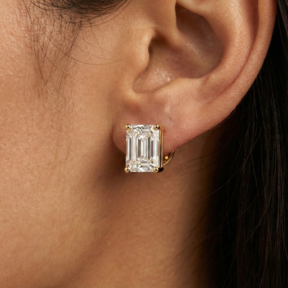 Moldavia – Emerald Cut Lab Grown Diamond Stud Earrings in 14K Solid Gold