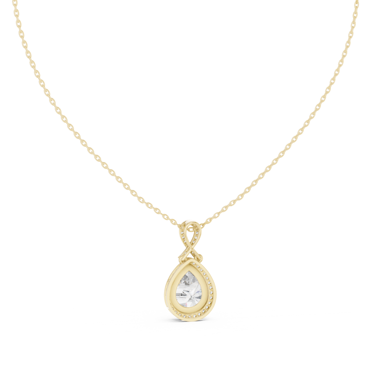 Nozomi Pear Cut Lab Diamond Halo Solitaire Necklace