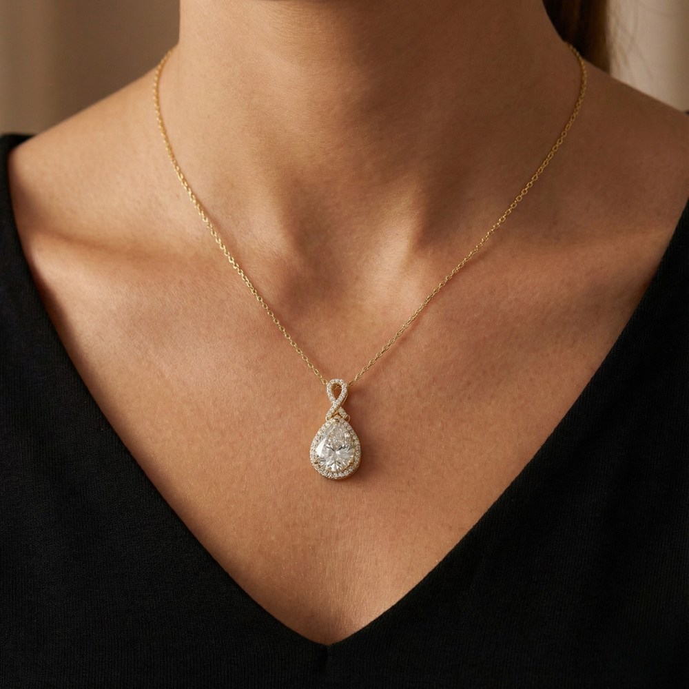 United States customers eagerly buy Pear Cut diamond necklaces, purchase solitaire diamond necklaces, and explore solitaire diamond necklaces like Nozomi through seamless online shopping. Enjoy effortless access to Pear solitaire diamond necklaces online, IGI-certified excellence, and superior pear cut lab grown diamond sparkle when shopping halo style solitaire necklaces at Jewel Nests—your destination for romantic solitaire necklace designs.