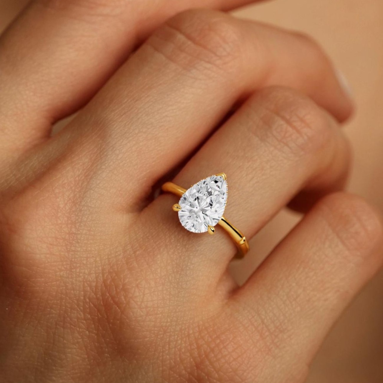 Oslo Vow – Pear Cut Hidden Halo Bamboo Band Engagement Ring