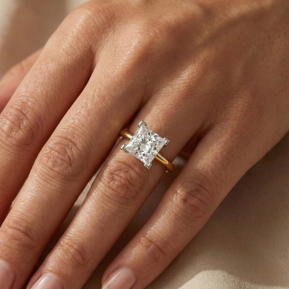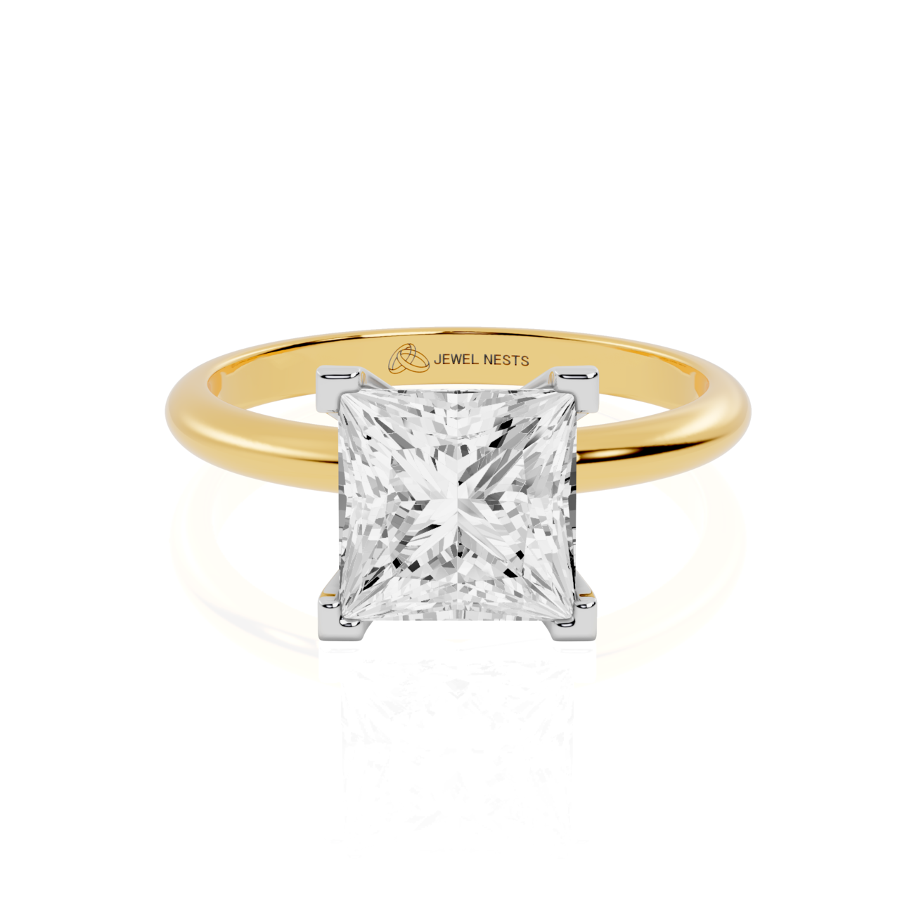 Princess Cut Lab Grown Diamond Solitaire Engagement Ring | Maple Grace by Jewel Nests celebrates timeless refinement and ethical beauty for couples in the United States and Canada. This elegant Solitaire diamond ring features a certified Princess cut lab grown diamond set in four secure V prongs, designed to maximize brilliance and durability. The sleek 1.90 mm tube band and optional two-tone gold finish combine modern sophistication with classic romance, making it the perfect symbol of love and commitment.