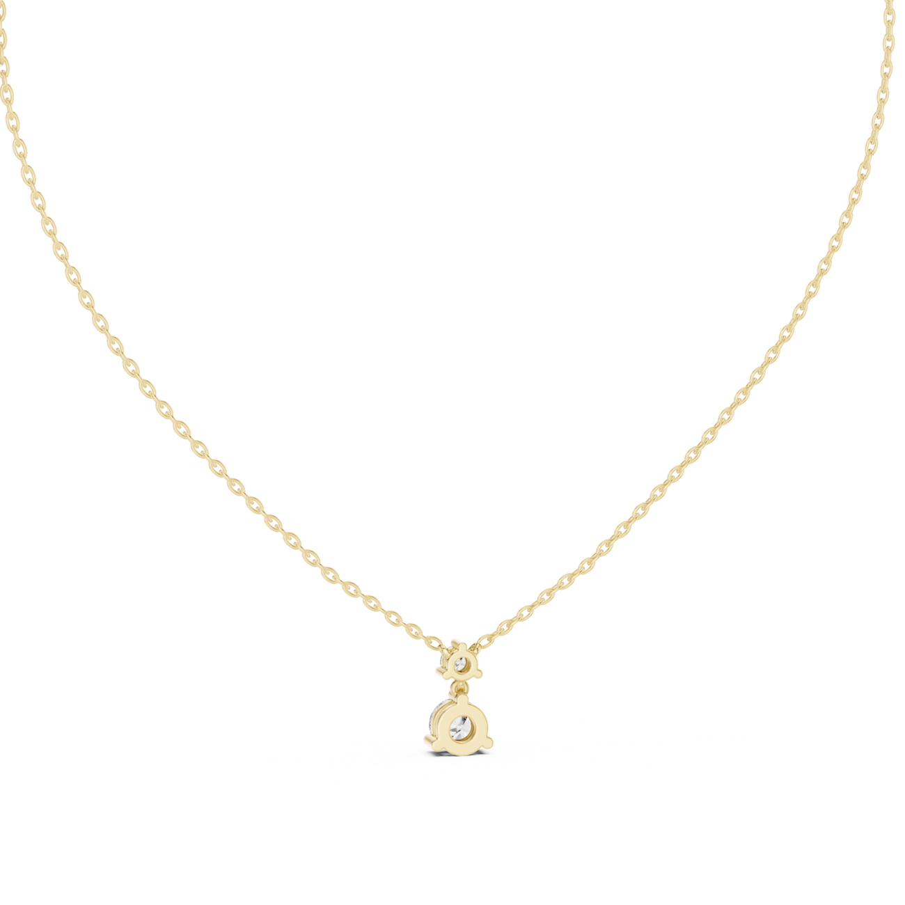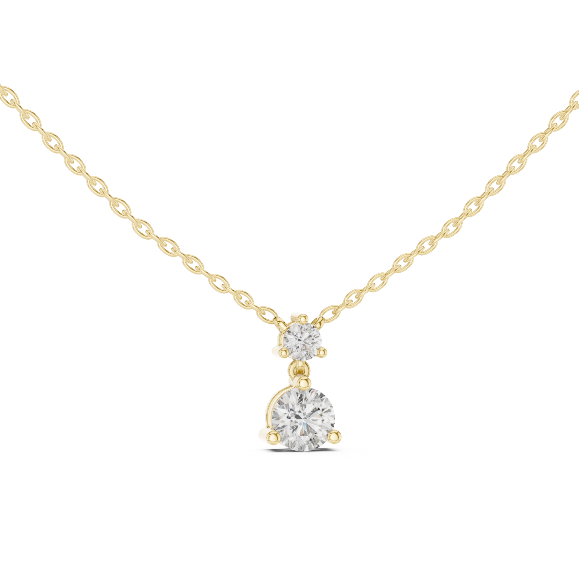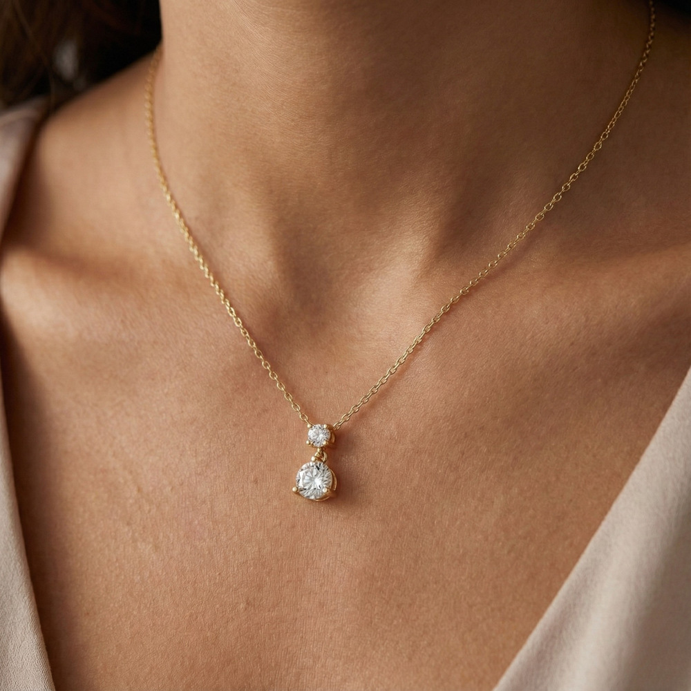 Solene by Jewel Nests features two precisely matched round brilliant cut lab grown diamonds totaling 0.60-0.70 carats, elegantly suspended side-by-side in a minimalist solitaire necklace design. Set on a solid gold chain (1.30–1.50 mm width, adjustable 16–20 inches) in 14K or 18K Yellow Gold, White Gold, or Rose Gold, this fine jewelry diamond necklace delivers classic round sparkle with E/F color and VS-VVS clarity for versatile layering appeal.