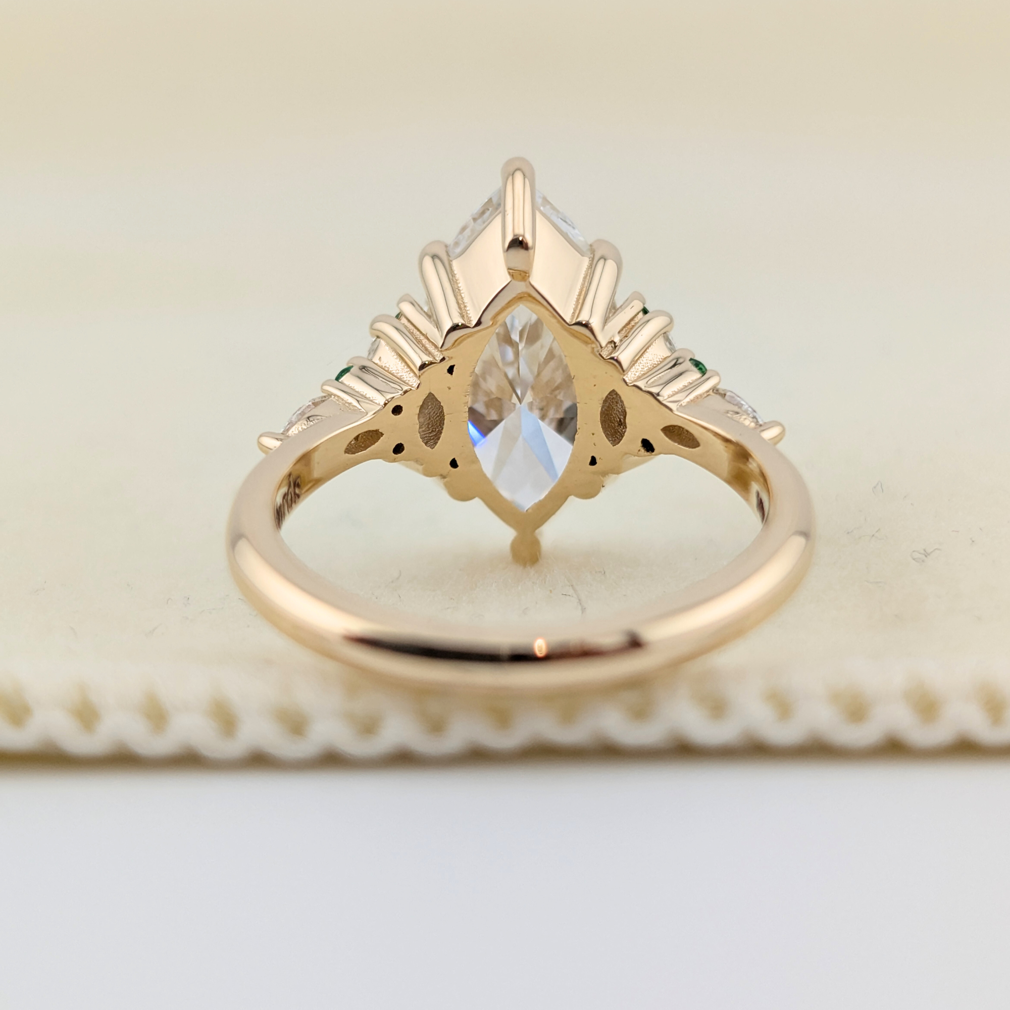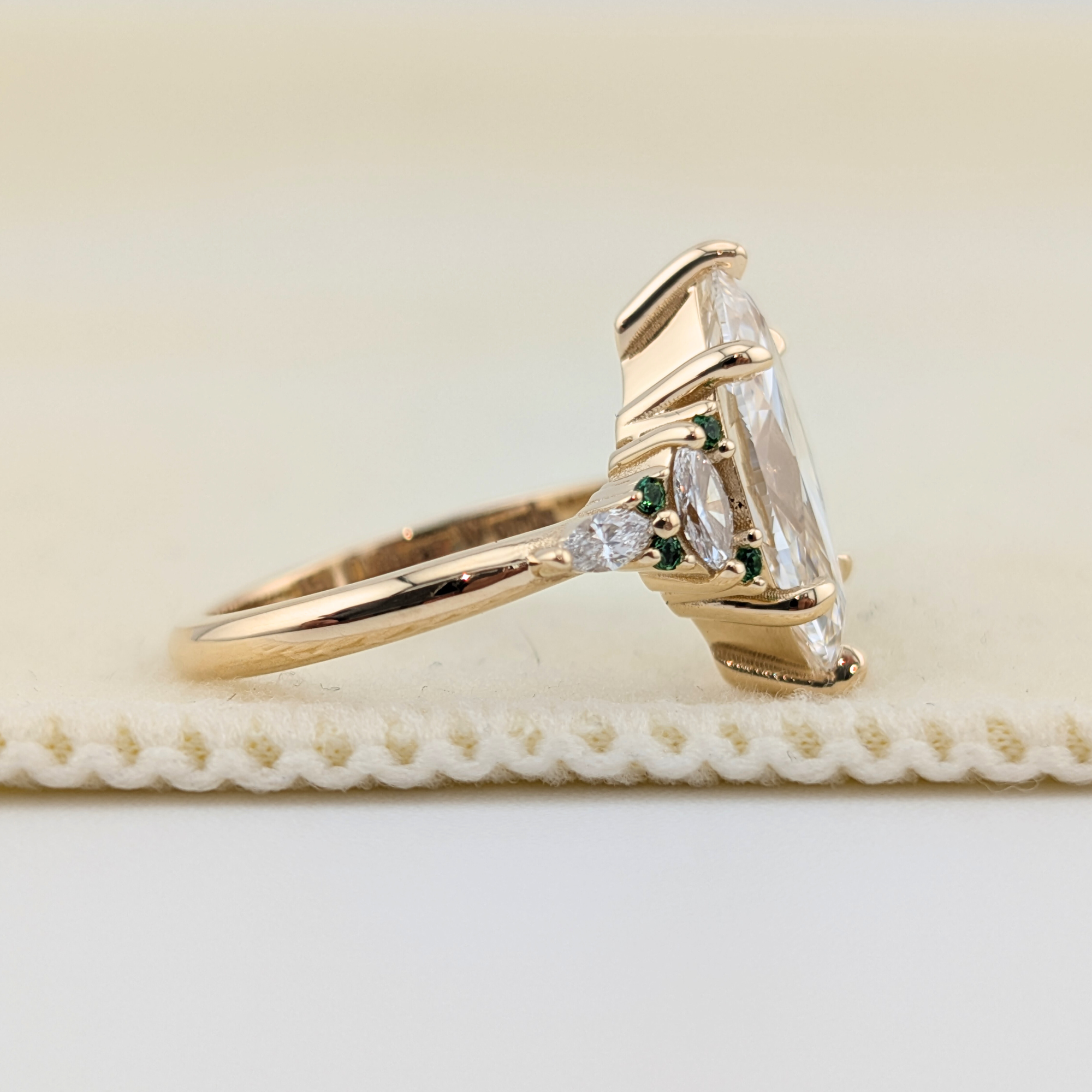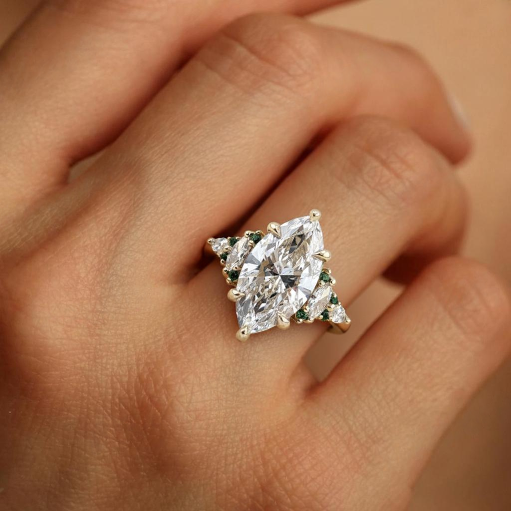 The Yamuna Flow – Marquise Cut Lab Grown Diamond & Green Emerald Nature-Inspired Engagement Ring | 14K & 18K Gold | Jewel Nests