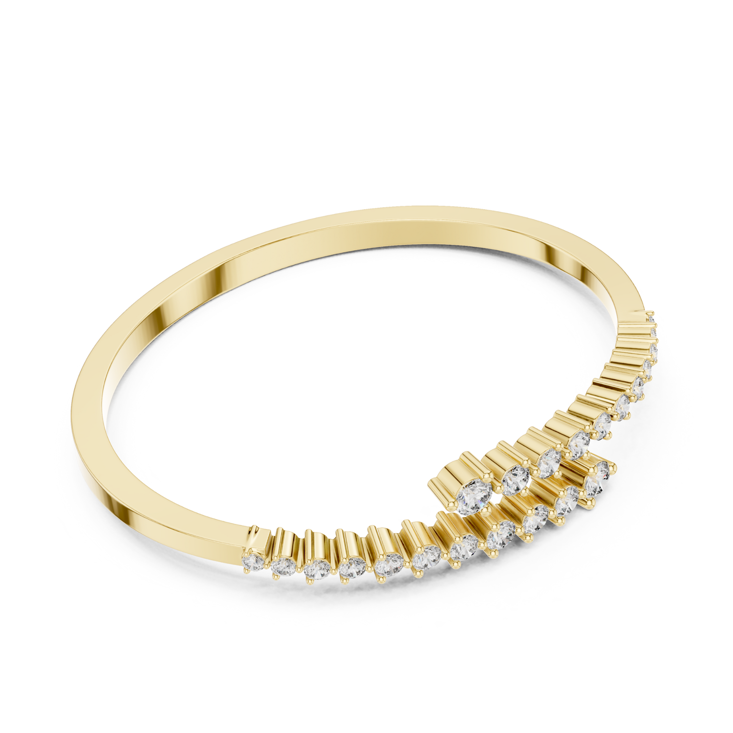 Twist Chevron Lab Grown Diamond Hinged Bangle Bracelet 14K Solid Gold | Dalia by Jewel Nests captivates with 2.0 carat round lab grown diamonds in premium E/F color and VS-VVS clarity, masterfully set within a dynamic twist chevron design across a tapered 3.0-2.0mm hinged band for architectural elegance. Available in 14k/18k solid yellow gold, white gold, or rose gold, this statement gold bracelet perfectly suits lab grown diamond bracelet Canada and lab grown diamond bracelet USA customers seeking sculptural Lab Diamond Bracelets. Ideal as a luxurious gift for mom, romantic gift for wife, Valentine gift diamond bracelet, or anniversary diamond bracelet, it embodies modern artistry with ethical fire.