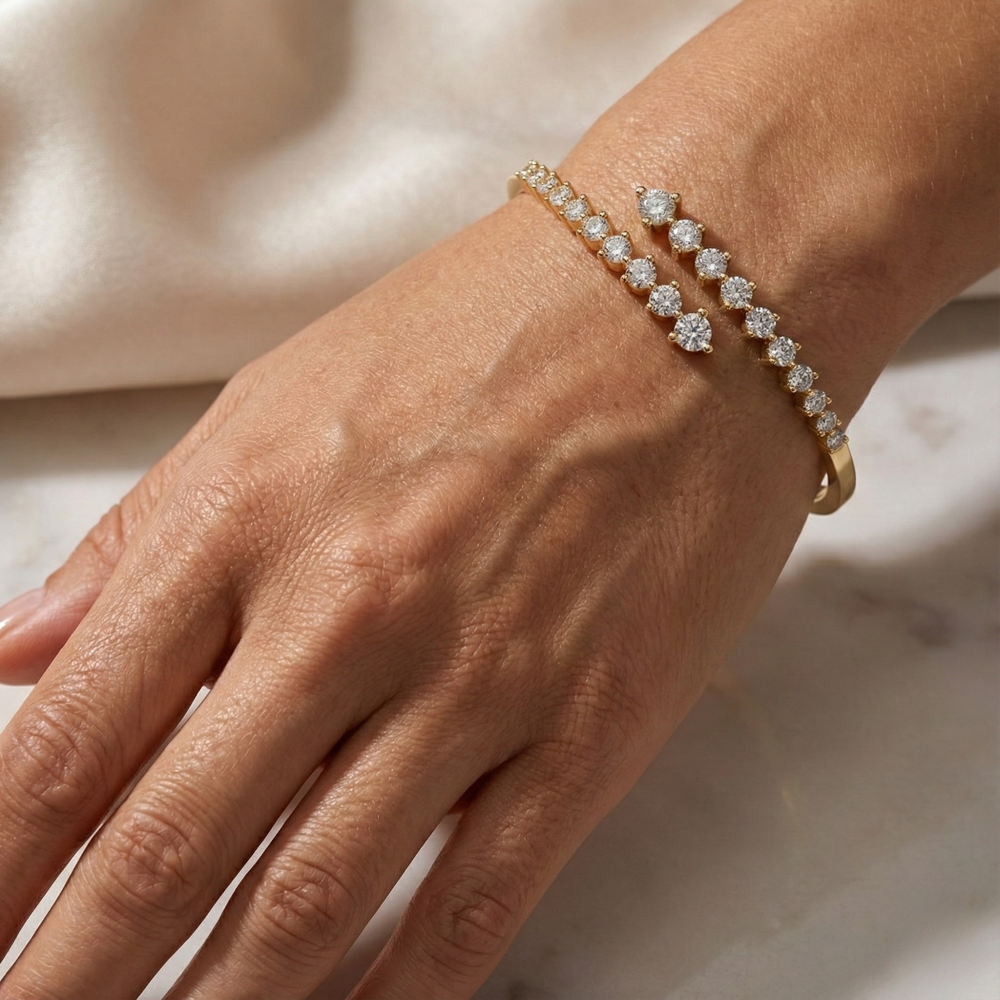 Shop Dalia by Jewel Nests confidently—this architectural diamond bracelet elevates lab diamond collections in 14k gold diamond bracelet, 18k gold diamond bracelet, yellow gold diamond bracelet, white gold diamond bracelet, or rose gold diamond bracelet finishes tailored for North American trendsetters. Discerning shoppers frequently Buy fine jewelry bracelets or purchase diamond bracelets online, celebrating the secure hinged construction, 2.0ct twist chevron drama, and gallery-worthy craftsmanship of premium Lab Diamond Bracelets.