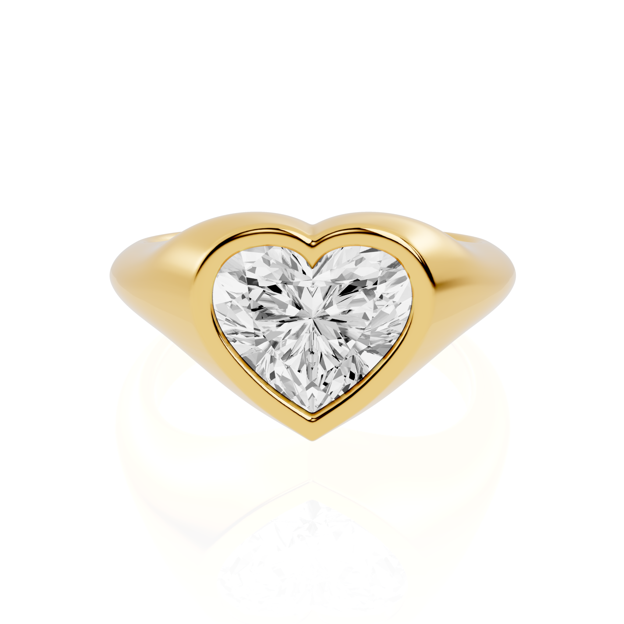 Heart Cut Bezel Set Lab Diamond Ring | Venus Tear by Jewel Nests, Discover the romance of everlasting love with the Venus Tear, an exquisite Heart Cut Bezel Engagement Ring that radiates passion and elegance. This enchanting Heart Lab Diamond Ring features a perfectly cut heart-shaped lab-grown diamond nestled within a modern bezel setting, ensuring both durability and brilliance. Designed with a bold thick band, this piece symbolizes enduring strength — an ideal Heart Diamond proposal bridal ring for those who express love through timeless design.